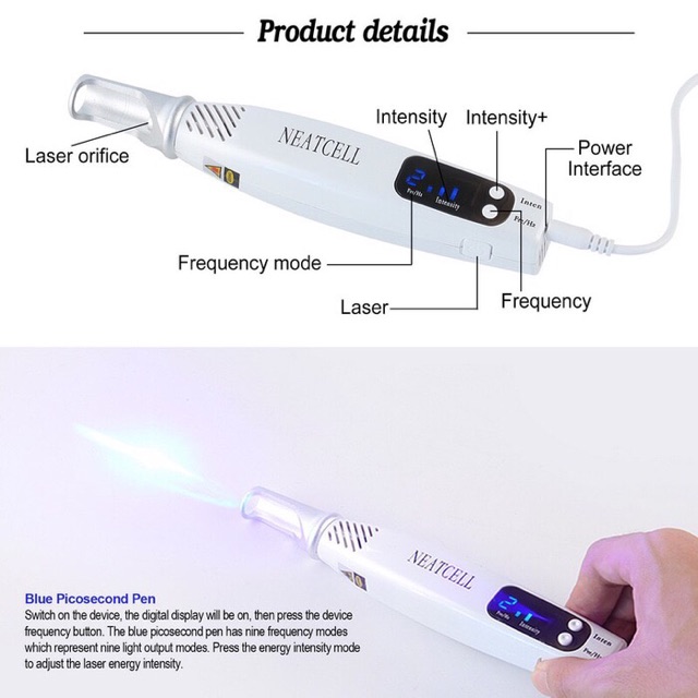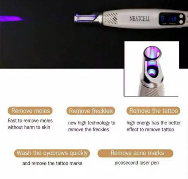 The process includes lasers sending out brief pulses which turn dark pigment cells into lighter ones so they can be gotten rid of by your bodys natural protection systems yet as you may popular from first-hand experience or TELEVISION shows such as Tattoo Nightmares. Plug in the power allow the device to power on the digital screen will display when complete. Neatcell Picosecond Laser Pen is a safe effective and inexpensive alternative to the traditional laser tattoo removal at the dermatologists office.